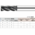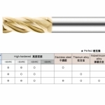 主要特性:極細微粒碳化鎢母材韌性高,被覆 n.B.S ,耐磨耗,非一般鈦鋁。專用於高速 M/C 高硬度高速切削,能對熱處理模具直接進行粗加工到細加工,減少換刀次數,提高機床稼動率,節省模具製作時程。