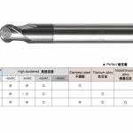 Main Character: Ultra Fine Micro Grain Carbide that has high toughness, coating n.B.S and wear-resisting, non-general titanium aluminum is specialized in milling on M/C high hardness at a high speed and can carry on rough machining get to detailed process directly for heat treatment mould to reduce change times, improve machine flexible rate and shorten producing time.