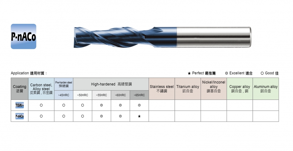 200 PLUS 奈米泛用铣刀系列 200 PLUS Nano End Mills Series General Application