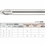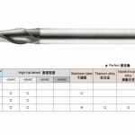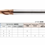 主要特性:碳化鎢母材韌性高,被覆 AlTiN,耐磨耗。專用於高速 M/C 高硬度高速切削,