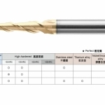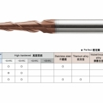 主要特性:碳化鎢母材韌性高,被覆 AlTiN,耐磨耗。專用於高速 M/C 高硬度高速切削,