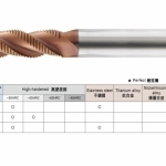 主要特性:碳化鎢母材韌性高,被覆 AlTiN,耐磨耗。專用於高速 M/C 高硬度高速切削,