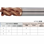 主要特性:碳化鎢母材韌性高,被覆 AlTiN,耐磨耗。專用於高速 M/C 高硬度高速切削,