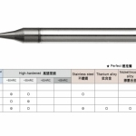 適用材料: ~50HRC/鐵材 / 素碳鋼 / 鑄鐵 / 模具鋼 / 合金鋼 / 鋁合金 / 工具鋼 / 熱處理鋼 / 焊補鋼料