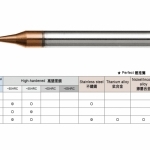 主要特性:碳化鎢母材韌性高,被覆 AlTiN,耐磨耗。專用於高速 M/C 高硬度高速切削,