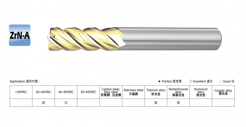 For Titanium / Inconel Alloy, PVR1T Corner Radius End Mill,Diameter:4mm~20mm,Coating:Zirconia + AlTiBN