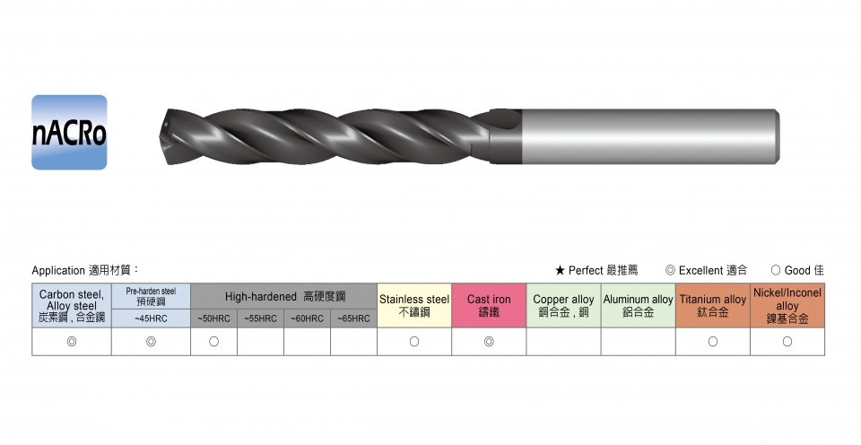 5xD High Performance With Coolant Hole Carbide Drill, Diameter:3mm~14mm, Coating:nACRo