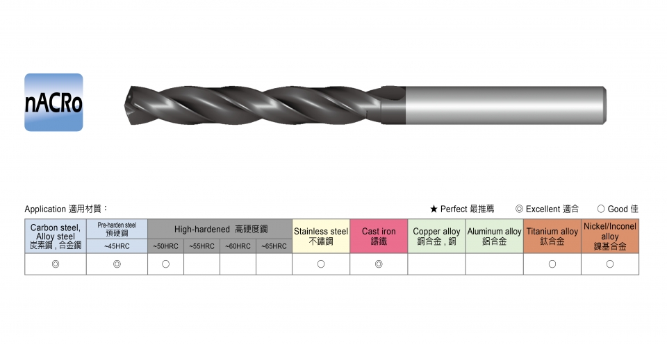 8xD High Performance With Coolant Hole Carbide Drill, Diameter:3mm~12mm, Coating:nACRo