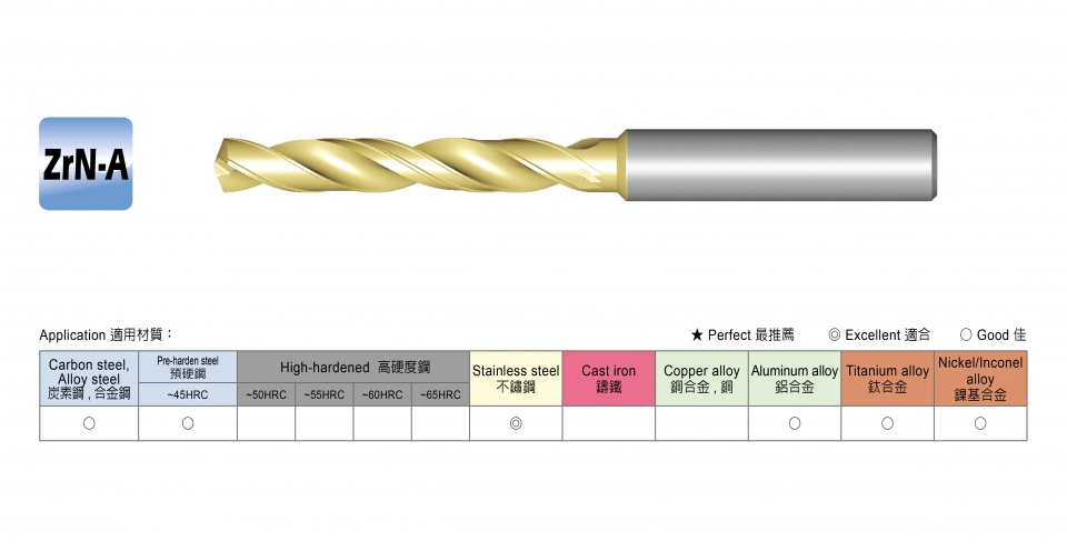 5xD Carbide Drill For Stainless Steel, Diameter:3mm~14mm, Coating:ZrN-A