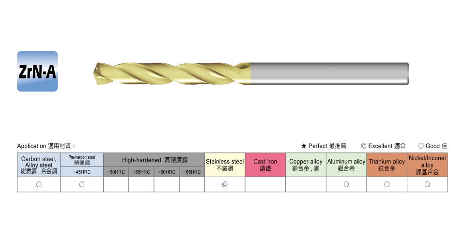 8xD Carbide Drill With Coolant Hole For Stainless Steel, Diameter:3mm~12mm, Coating:ZrN-A