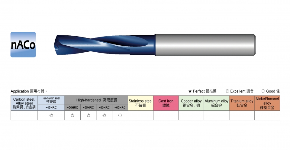 Carbide Drill For High Hardness Steel, Diameter:3mm~14mm, Coating: nACo