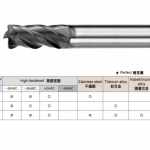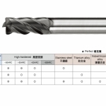 主要特性:極細微粒碳化鎢母材韌性高,被覆 n.B.S ,耐磨耗,非一般鈦鋁。專用於高速 M/C 高硬度高速切削,能對熱處理模具直接進行粗加工到細加工,減少換刀次數,提高機床稼動率,節省模具製作時程。